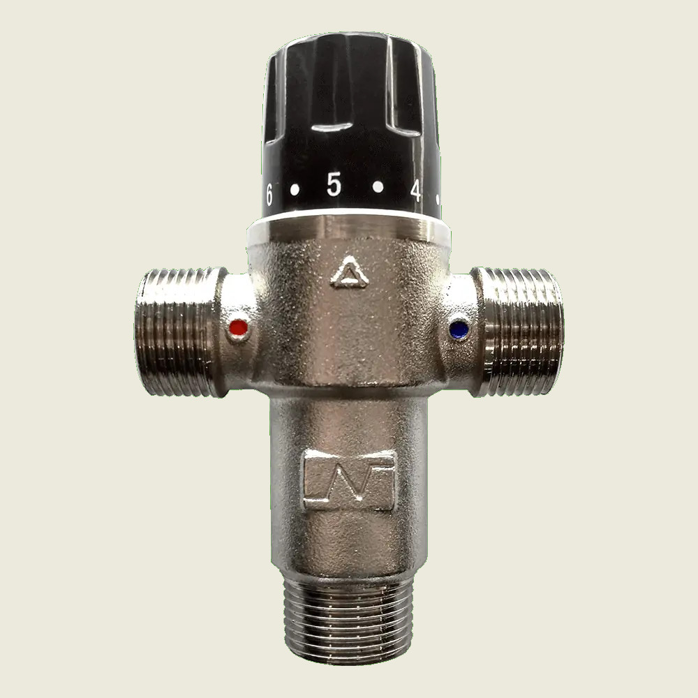 Esta válvula mantiene la temperatura del agua según se establezca, mezclando proporcionalmente el agua fría y caliente.